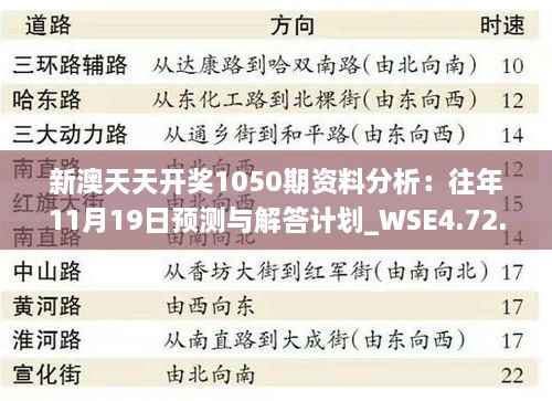 为了更好地帮助大家了解新澳开奖结果及相关信息,我们将对1050期的开奖进行详细的分析与预测,并结合往年11月19日的开奖数据,进行前瞻评估,帮助大家把握即将到来的开奖趋势。