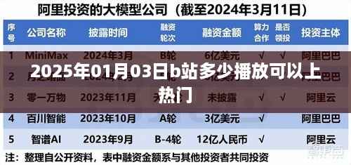 的日益丰富和观众需求的多样化,越来越多的创作者选择在B站(哔哩哔哩)发布自己的作品,对于创作者而言,如何让自己的视频在众多作品中脱颖而出,成为热门内容,无疑是一个值得探讨的话题,本文将围绕“2025年01月03日B站多少播放可以上热门”这一主题展开讨论,分析热门视频的特点以及播放量与热度的关系。