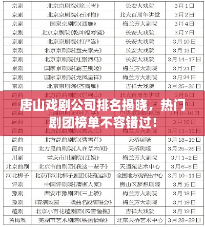 唐山戏剧公司排名揭晓,热门剧团榜单不容错过!